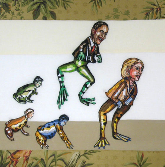 Presidential Penguins (2008). Cotton, thread. 16" x 16." |