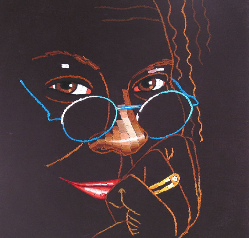 French Kiss: Isbelle Huppert (2006). Cotton, thread. 13" x 13." |