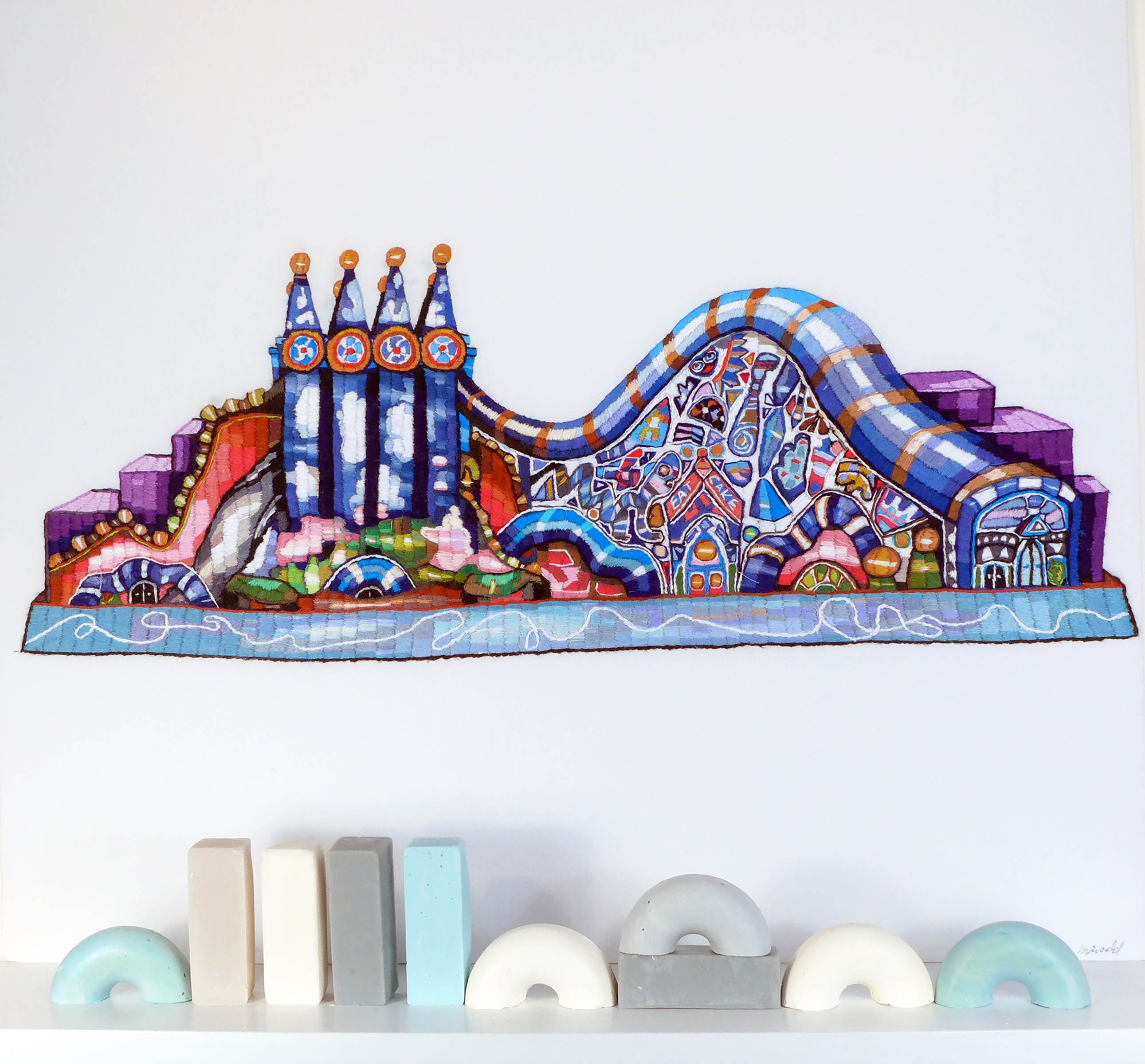 Endless Cake (Gaudi), 2019. Hand embroidery, soap |