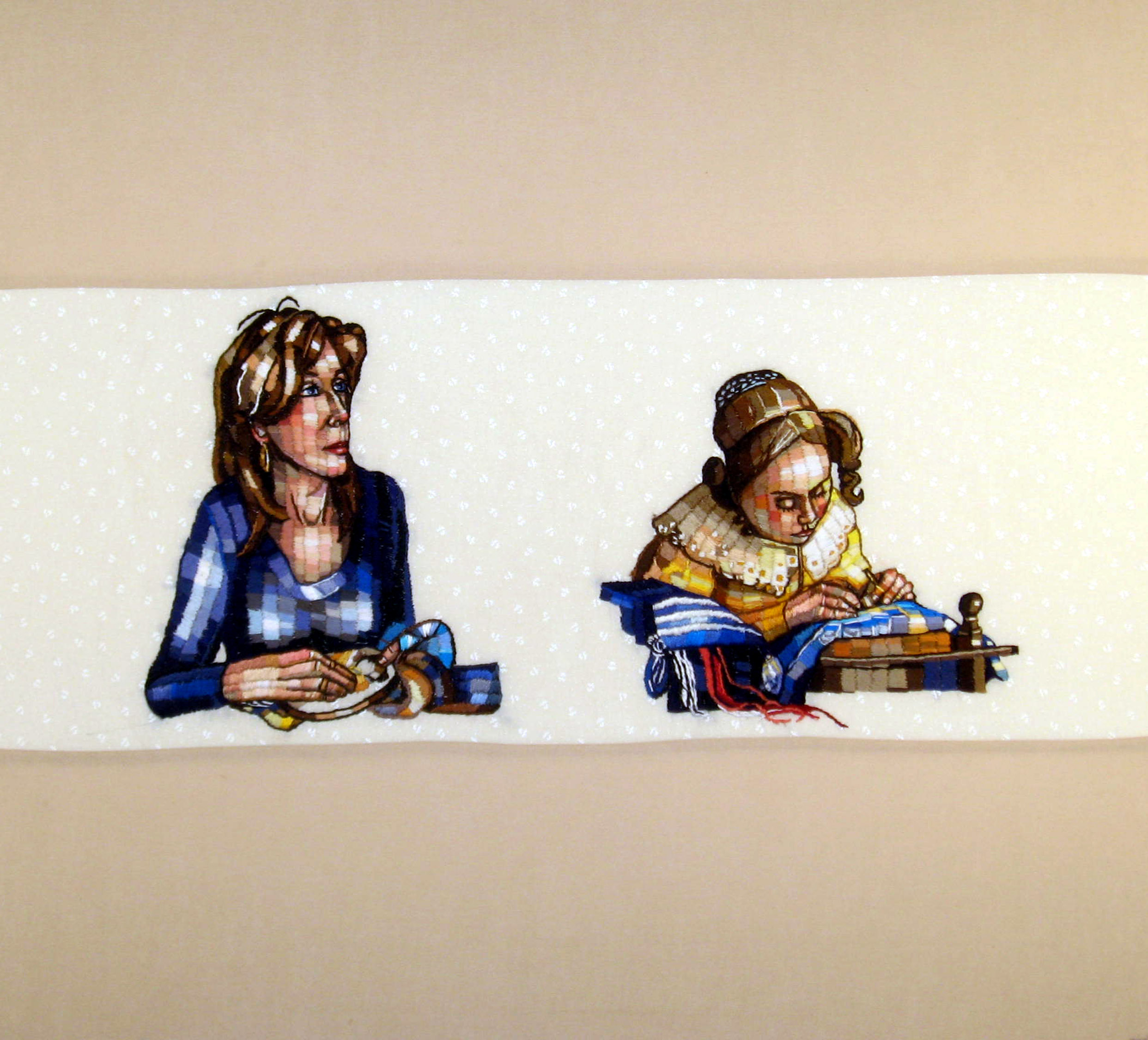 Self-portrait with Vermeer's Lacemaker, 2012. Cotton, thread, 24" x 26" |